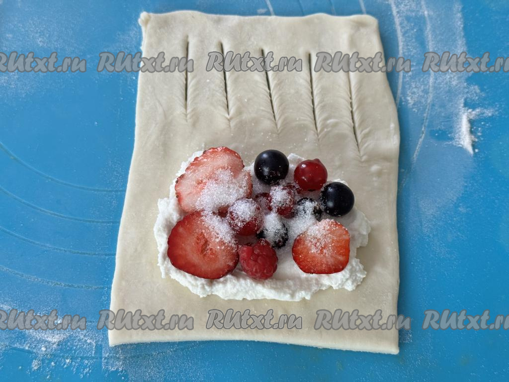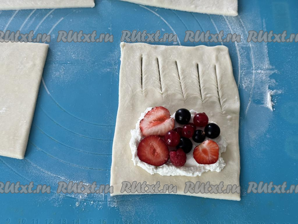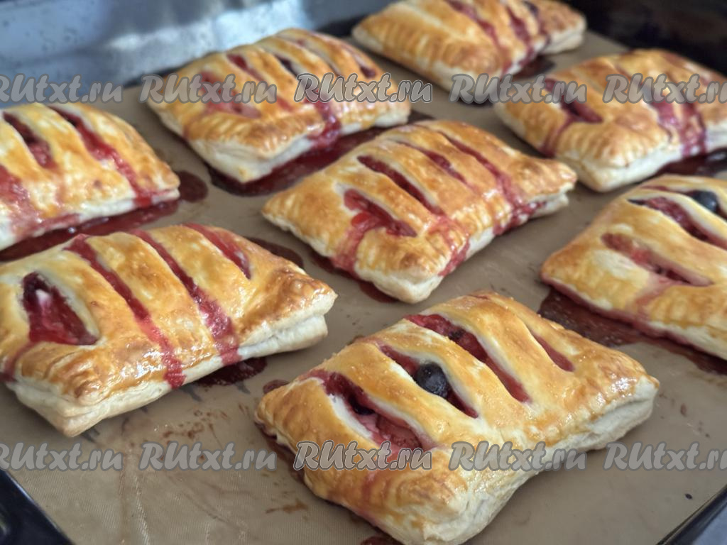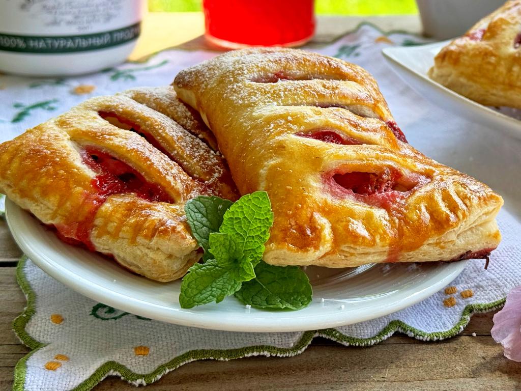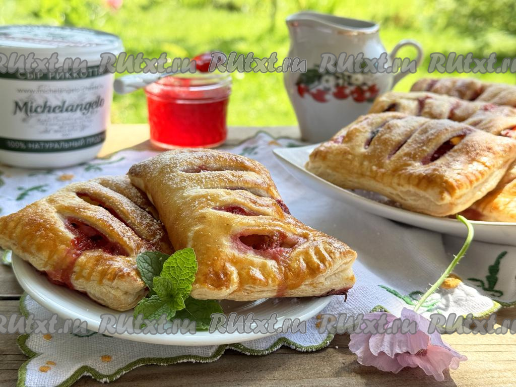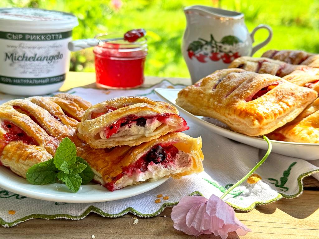 Слойки получаются очень аппетитными. Сочетание слоёного теста и нежной начинки из рикотты и ягод делает эту выпечку очень вкусной.
