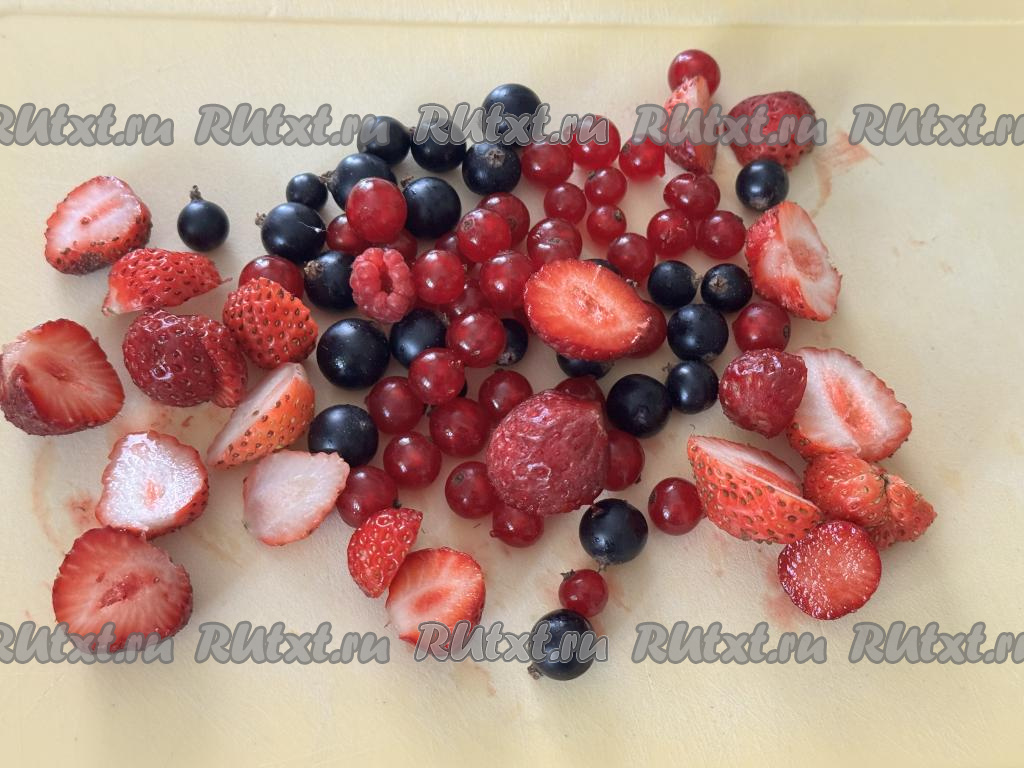 Крупные ягоды можно разрезать на части. У меня была клубника, я её нарезала на более мелкие части.