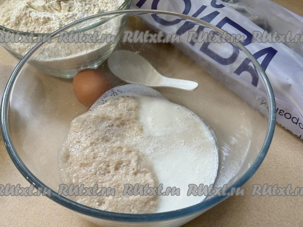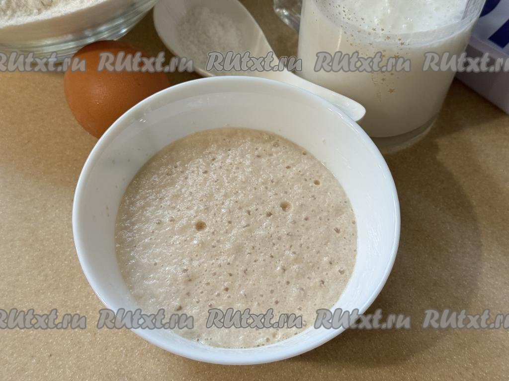 Оставить дрожжевую смесь на 10 минут (до образования на поверхности пышной шапочки) в тёплом месте без сквозняков.