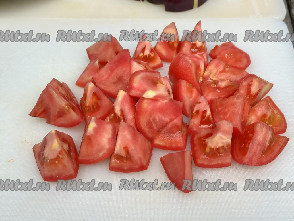Помидор вымыть, по желанию, очистить от кожуры, нарезать на кусочки.