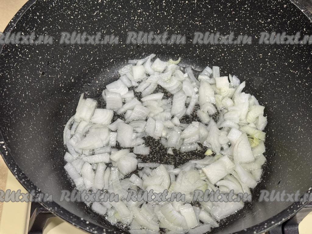 Обжарить лук до мягкости (в течение 4-5 минут), периодически перемешивая, на среднем огне.