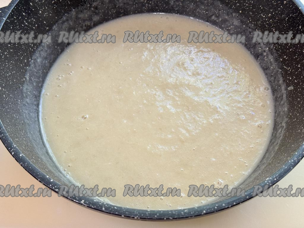 Поставить кастрюлю с грибным супом-пюре на огонь выше среднего, влить сливки, перемешать.