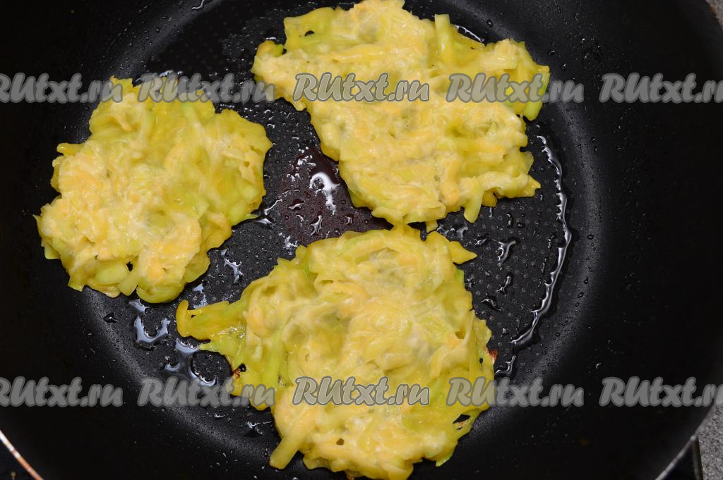 В сковороде хорошо разогреть растительное масло. Выкладывать на сковороду по 1 столовой ложе тыквенного теста, формируя плоские округлые оладьи.