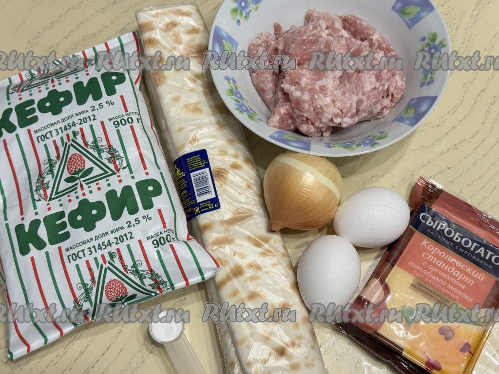 Подготовить продукты. Мясной фарш можно использовать любой, я взяла фарш из свинины. Лаваш можно использовать как свежий, так и подсохший.