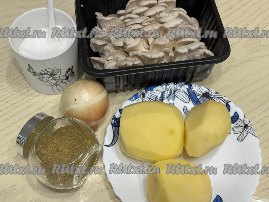 Подготовить продукты. Картошку и лук очистить. Вешенки хорошо промыть водой.