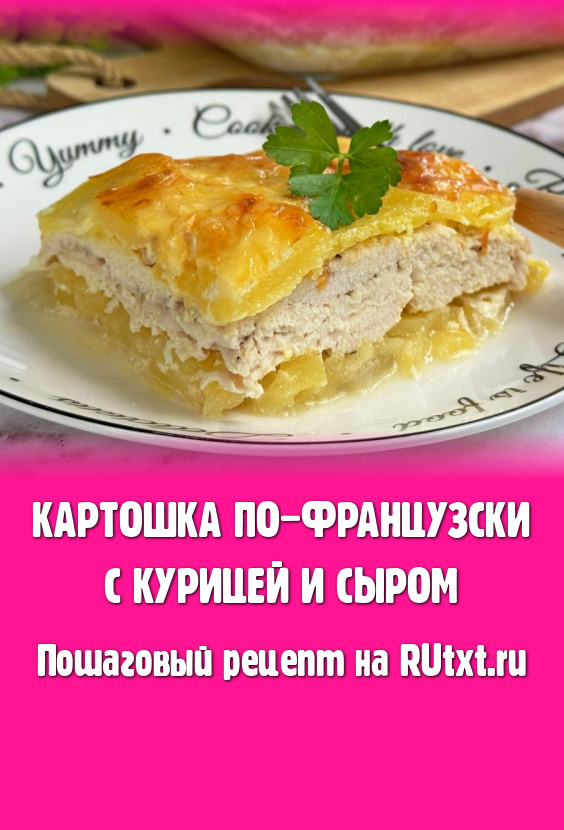 Предлагаю запечь в духовке картошку по-французски с курицей и сыром. Готовится блюдо просто, а получается очень вкусным, нежным, сочным и сытным. Такую картошку с мясом можно подать к столу в качестве полноценного обеда или ужина. Уверена, это блюдо многим придётся по вкусу!