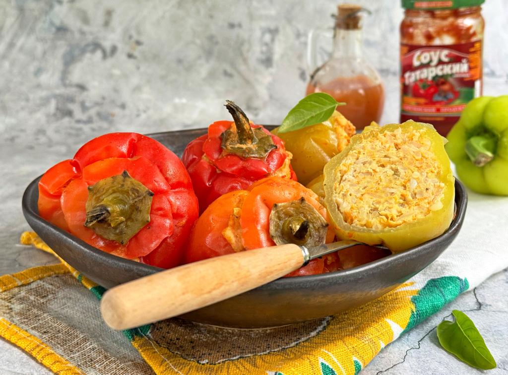 Фаршированный перец чаще всего готовят на плите. А я в этот раз предлагаю болгарский перец, фаршированный фаршем и рисом, потушить в томатно-сметанном соусе в мультиварке. Рецепт очень простой. Даже рис предварительно не придётся отваривать. Перцы получаются очень аппетитными, нежными, а соус делает их вкус ещё более насыщенным. Это блюдо вполне можно подать к столу в качестве полноценного обеда или ужина.