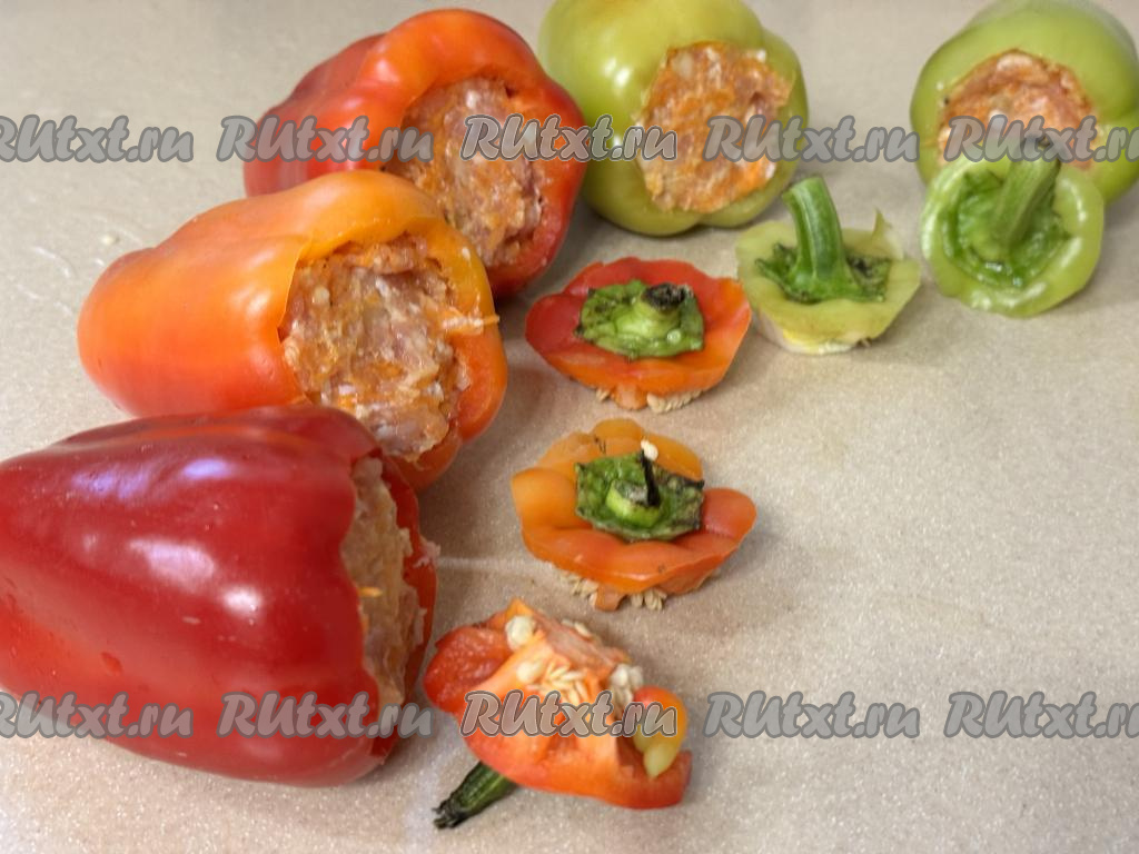 Фаршированные болгарские перцы накрыть "крышечками" и выложить в чашу мультиварки.