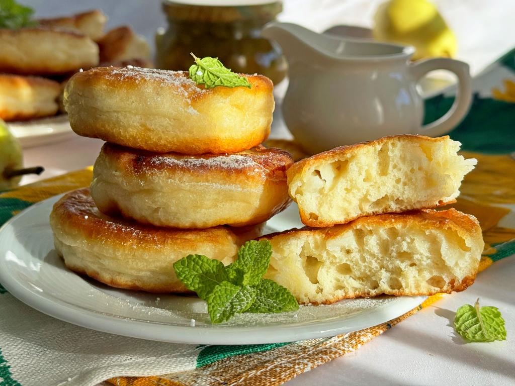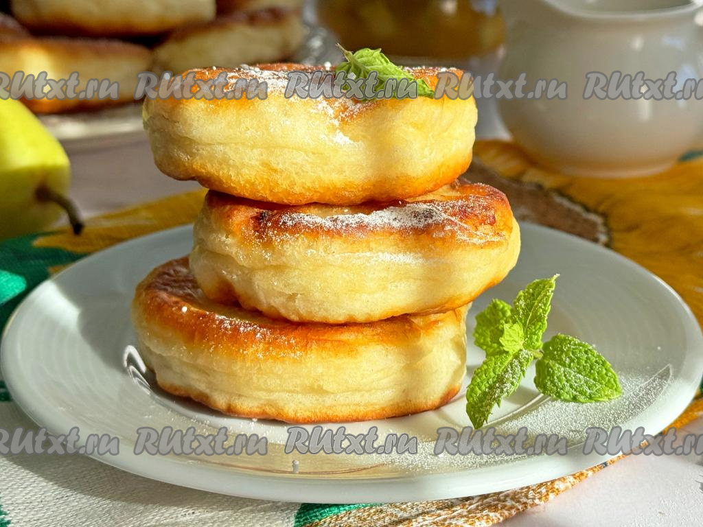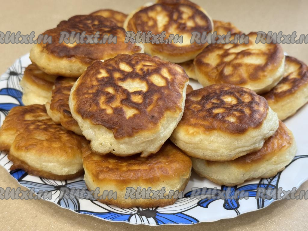 Готовые оладушки переложить на тарелку. Постепенно пожарить все оладьи, периодически перемешивая тесто и подливая в сковороду масло по мере необходимости. Обычно из предложенного количества ингредиентов получаются 13-14 воздушных оладий.