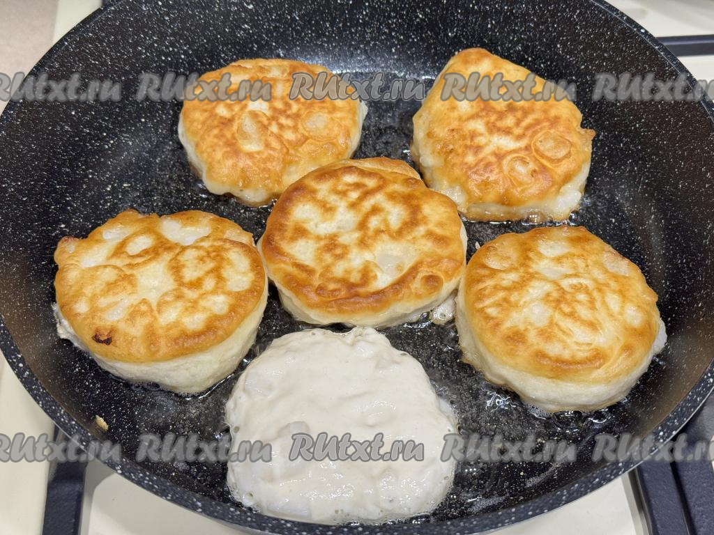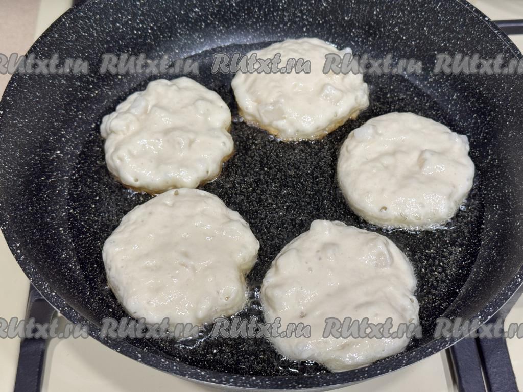 Жарить оладьи с грушей с двух сторон до золотистого цвета (минуты по 2-3 минуты с каждой стороны) на среднем огне.