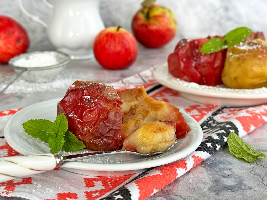 Яблоки, запечённые в аэрогриле, можно подать и в тёплом, и в остывшем виде. Если сахара вам недостаточно, тогда можно присыпать яблоки при подаче сахарной пудрой.