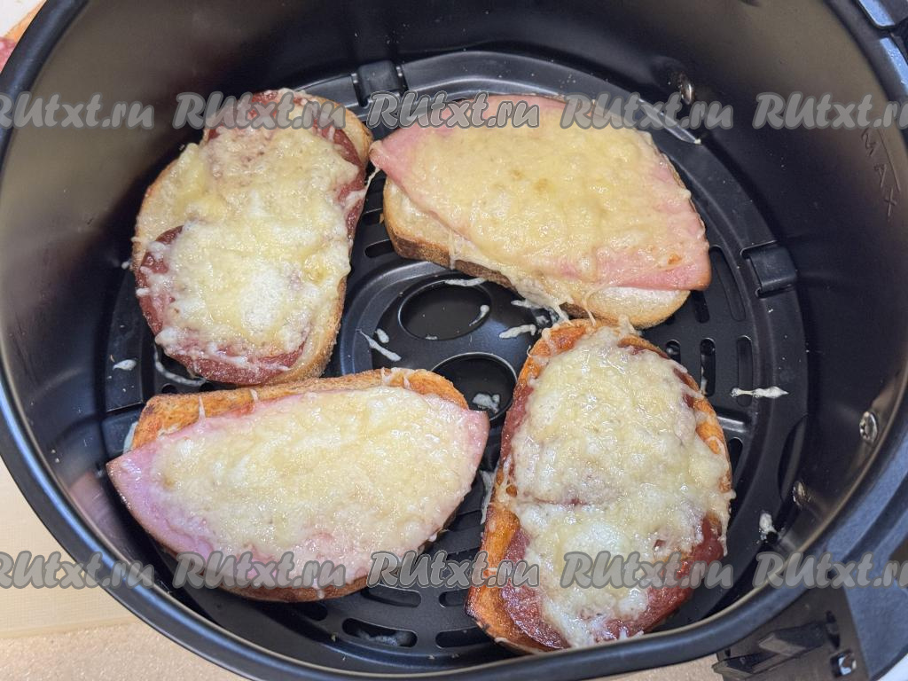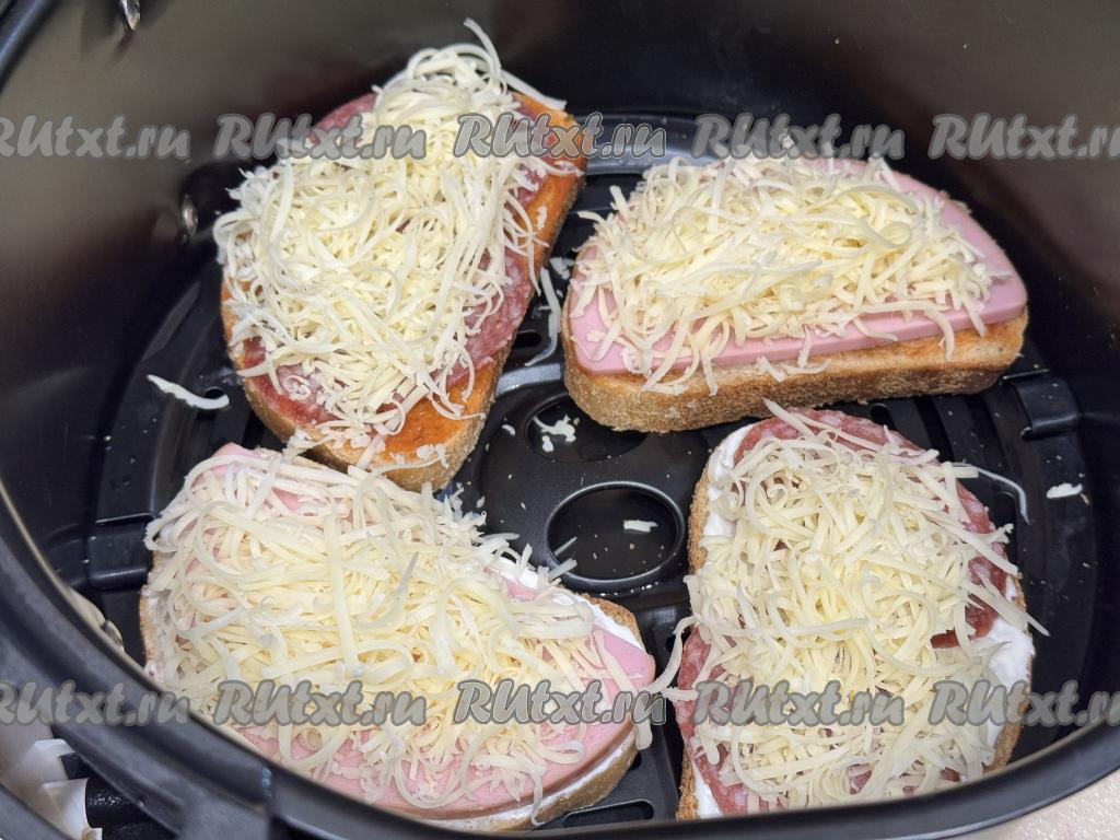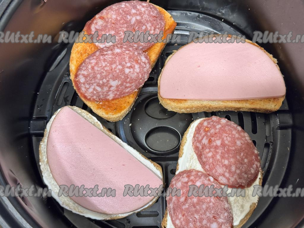 Выложить бутерброды в чашу аэрогриля в один слой.