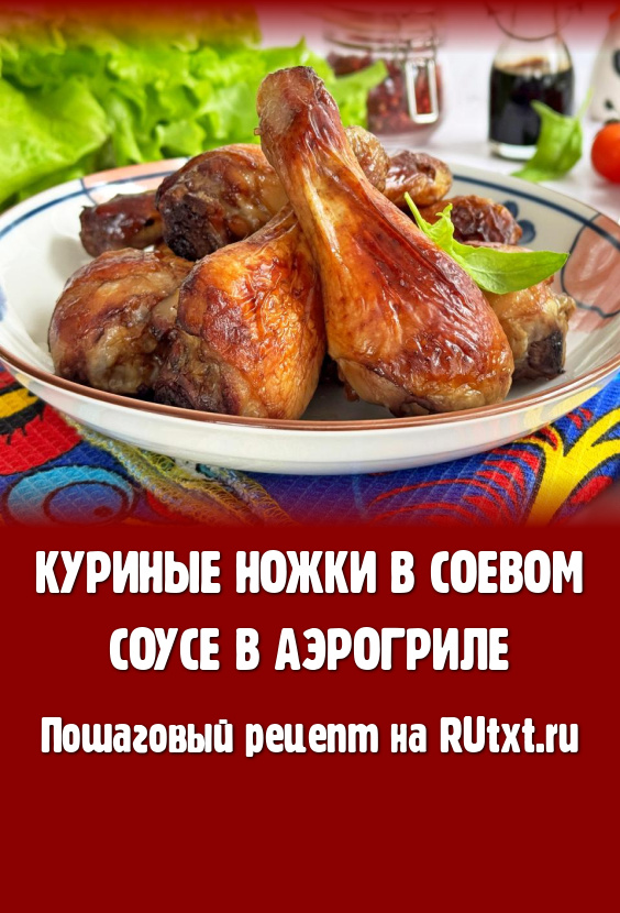 Хочу поделиться простым рецептом запекания куриных ножек в соевом соусе в аэрогриле. Для этого рецепта вам потребуется минимальный набор продуктов, даже соль не понадобится, так как соевый соус достаточно солёный. Куриные ножки получаются очень вкусными, пикантными, сочными, покрытыми ароматной, хрустящей корочкой. К столу их можно подать практически с любым гарниром.