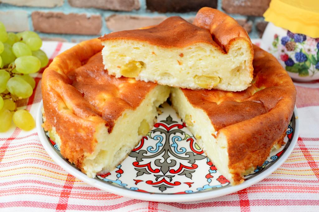 А вот как эта запеканка выглядит в разрезе. Сочетание нежнейшего творожного теста и сочного винограда делает эту выпечку изумительно вкусной!