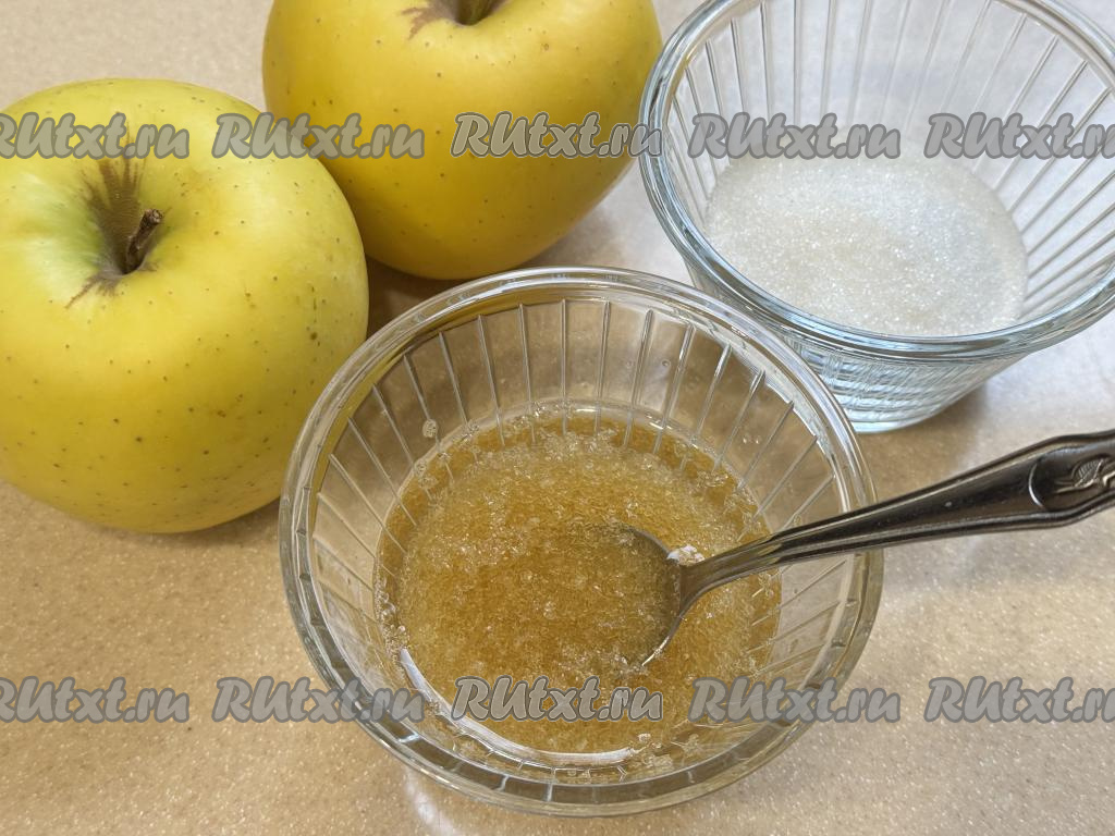 Сразу в горячее яблочное пюре добавить набухший желатин, тщательно перемешать (до полного растворения кристаллов желатина).