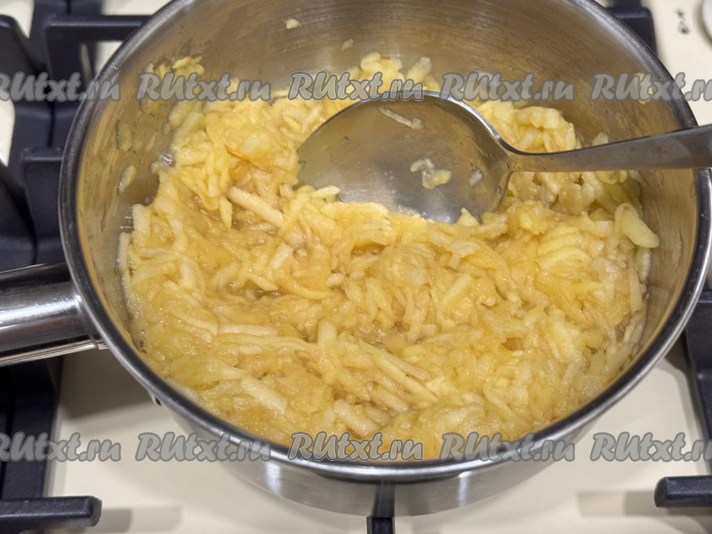 Как только яблочное пюре закипит, снять кастрюлю с огня.