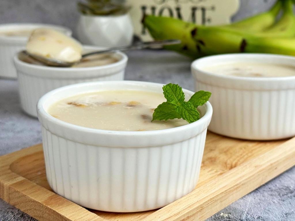 Десерт, приготовленный из ряженки и банана с желатином, поставить в холодильник до полного застывания (минимум на 2 часа).