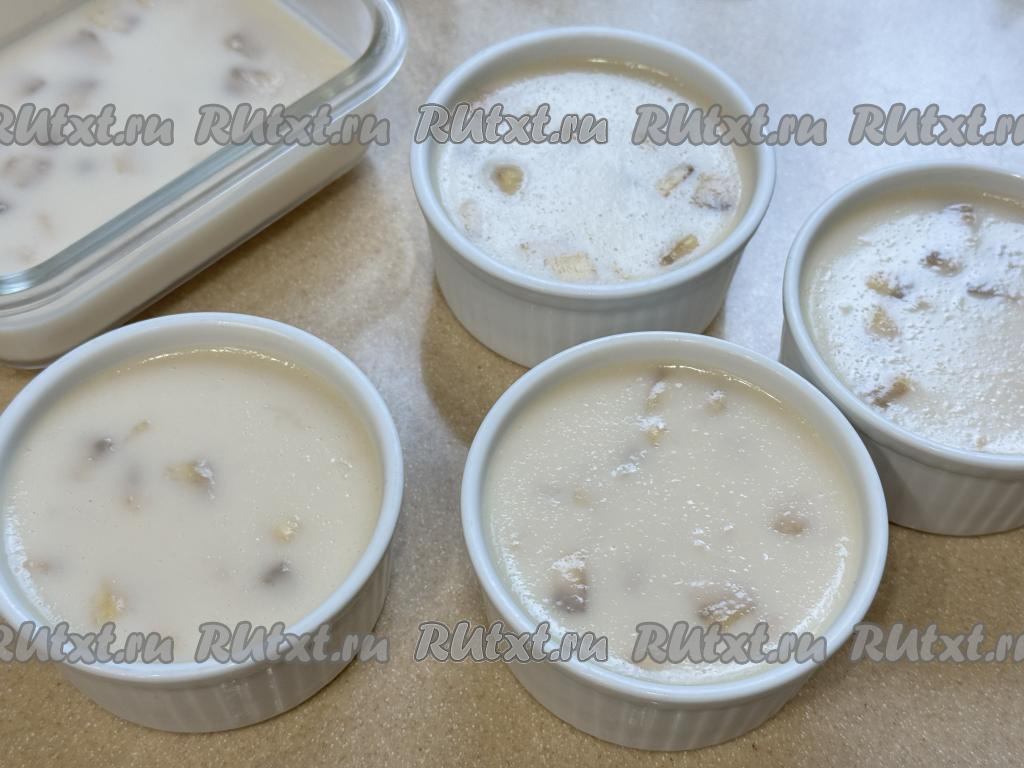 Разлить десерт по порционным формочкам, фужерам или креманкам.