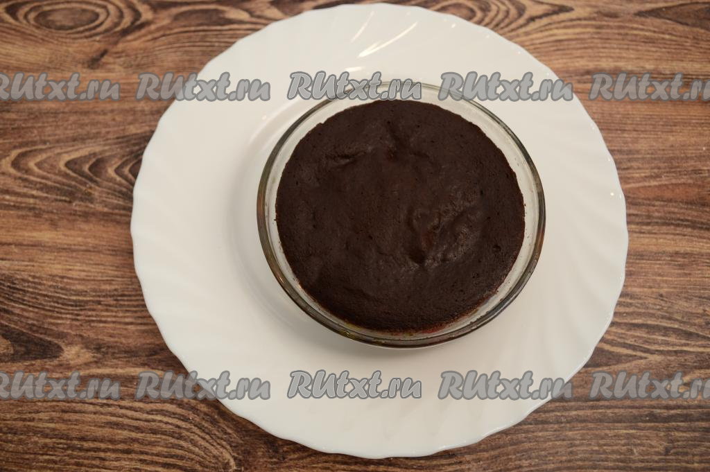 Готовый брауни сразу перевернуть на тарелку, вынуть его из формы.