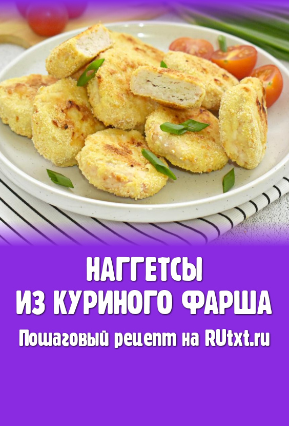 Аппетитные наггетсы из куриного фарша, хрустящие снаружи и нежные внутри, достаём из духовки и горячими подаём к столу, дополнив любимым соусом, гарниром или салатом из свежих овощей.