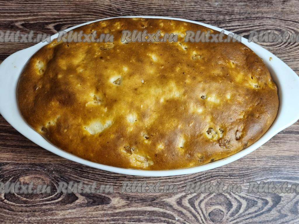 Форму для выпечки смазать изнутри (дно и бока) растительным маслом, выложить тесто, разровнять.