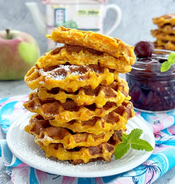 Вот так достаточно просто и быстро можно испечь в вафельнице нежные, мягкие, пышные морковно-яблочные вафли. К столу я предпочитаю подавать их тёплыми.