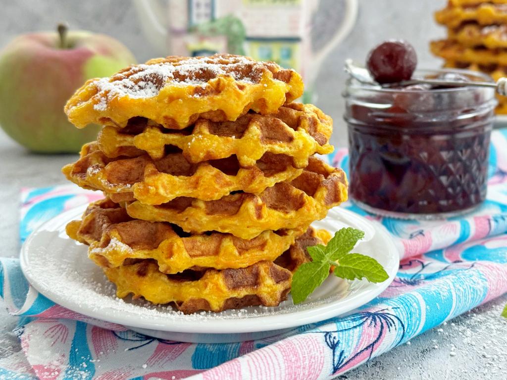 Недавно приготовила в вафельнице пышные, аппетитные вафли с добавлением в тесто яблок и моркови. Морковно-яблочные вафли получились очень вкусными, мягкими, нежными. Такие вафельки можно испечь на завтрак или к чаю и подать со сметаной, вареньем или сгущёнкой.