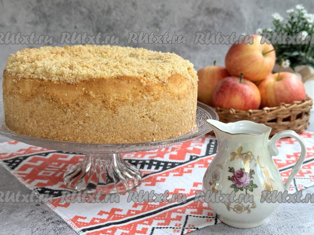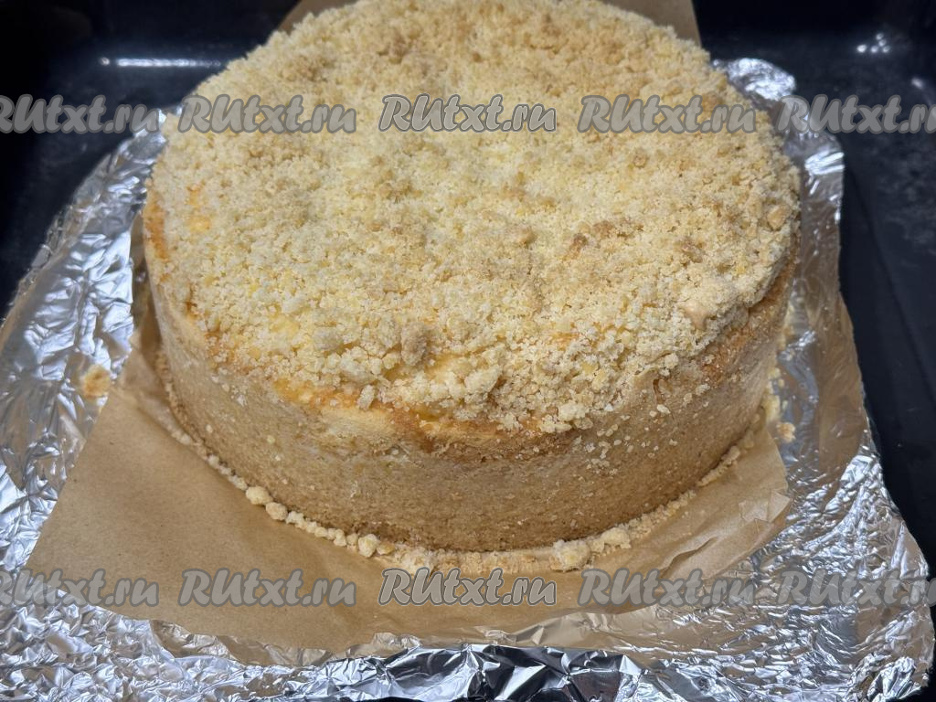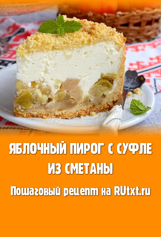 Посыпать верх пирога оставшейся песочной крошкой, равномерно покрывая всё суфле. Яблочный пирог с суфле из сметаны поставить в разогретую до 180 градусов духовку, выпекать 1 час.