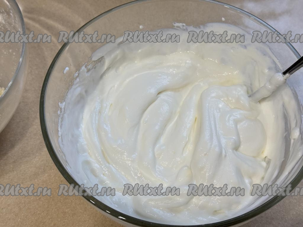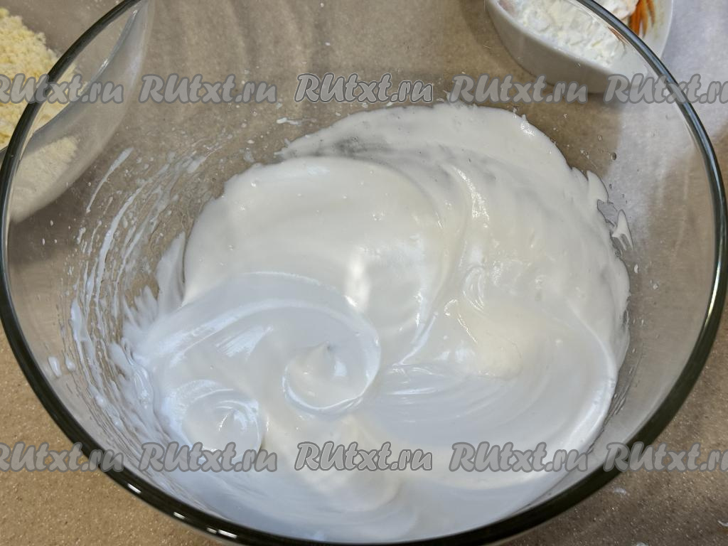 Взбить миксером белки с сахаром до стойких пиков (ориентировочно в течение 5 минут).