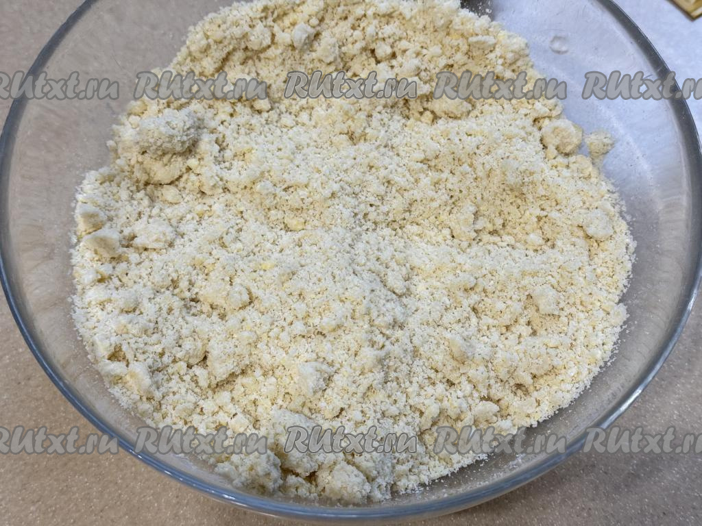 Перетереть содержимое миски руками од получения однородной, мелкой песочной крошки.
