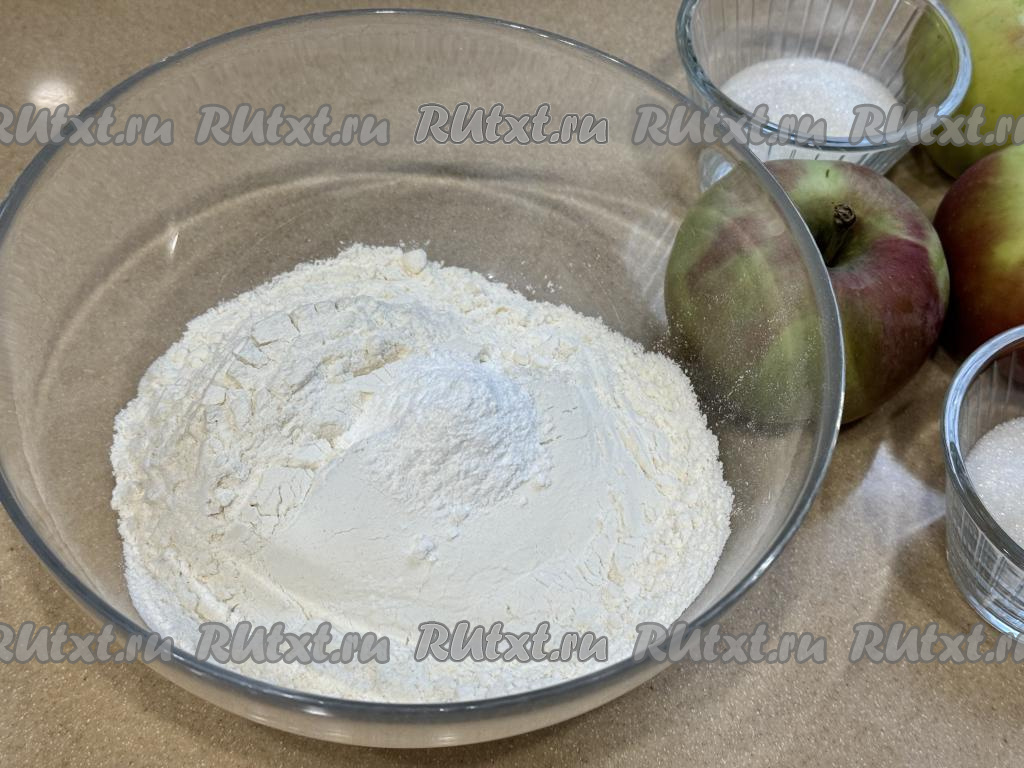 Прежде всего замесим песочное тесто-крошку, для этого в достаточно объёмной миске нужно соединить муку, соль, разрыхлитель и сахар, перемешать сухие ингредиенты.