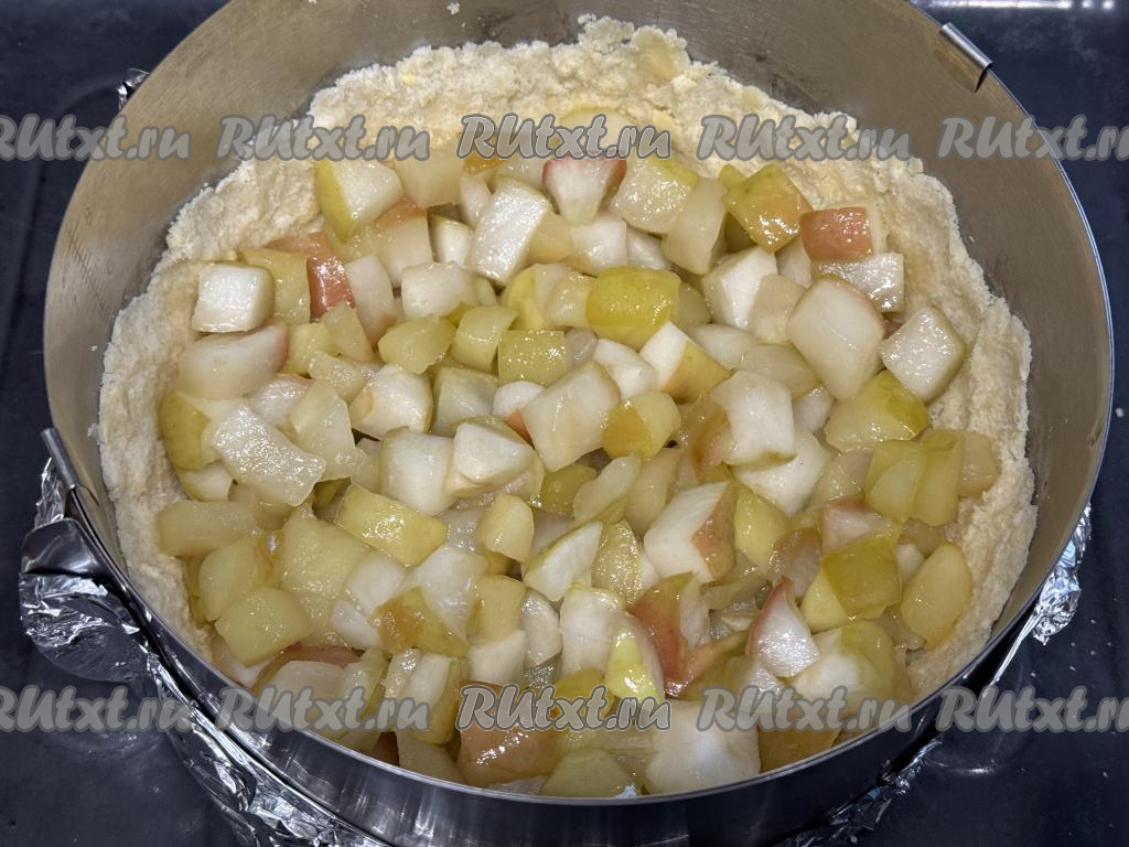 Выложить в форму с песочной основой пирога остывшую яблочную начинку.