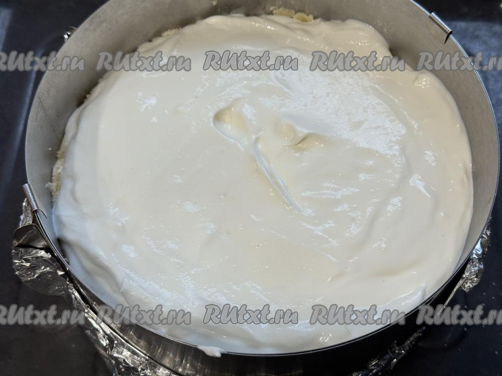 Готовый пирог достать из духовки, полностью остудить в форме (я оставила пирог в прохладном месте на 5 часов). Затем аккуратно снять бортики формы.