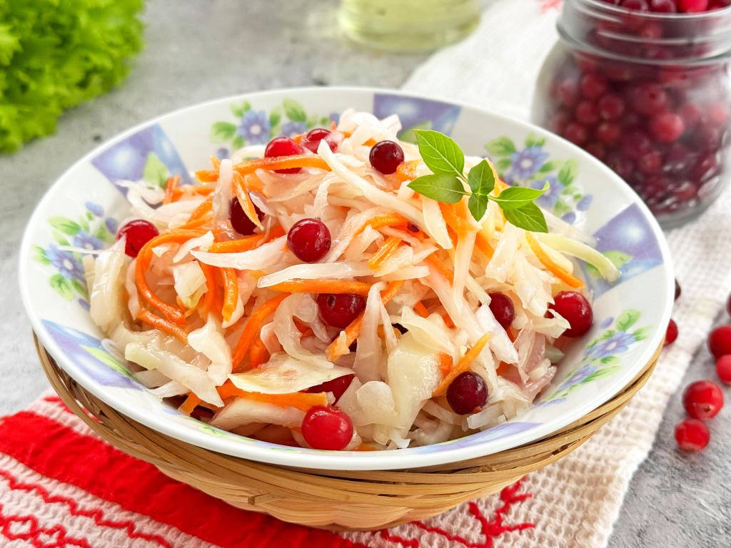 Подготовить продукты. Морковь и чеснок почистить. Свежую клюкву промыть водой (я использовала замороженные ягоды). Капусту промыть водой, верхние листья убрать.