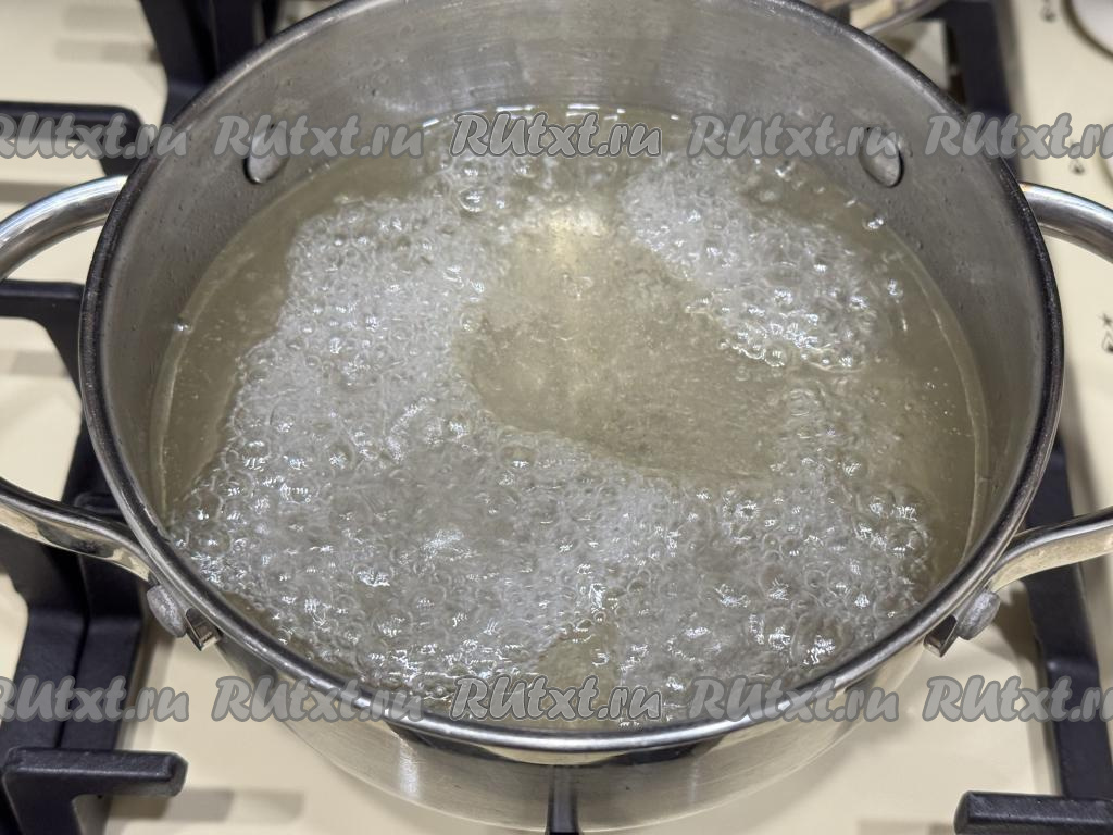 Для приготовления маринада нужно в кастрюлю влить воду, добавить сахар и соль.