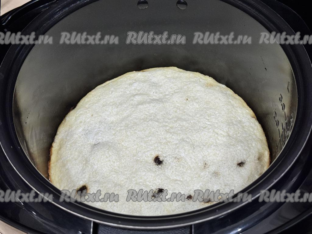 Крышку мультиварки закрыть. Выпекать творожную запеканку с изюмом на режиме "Выпечка" 1 час.