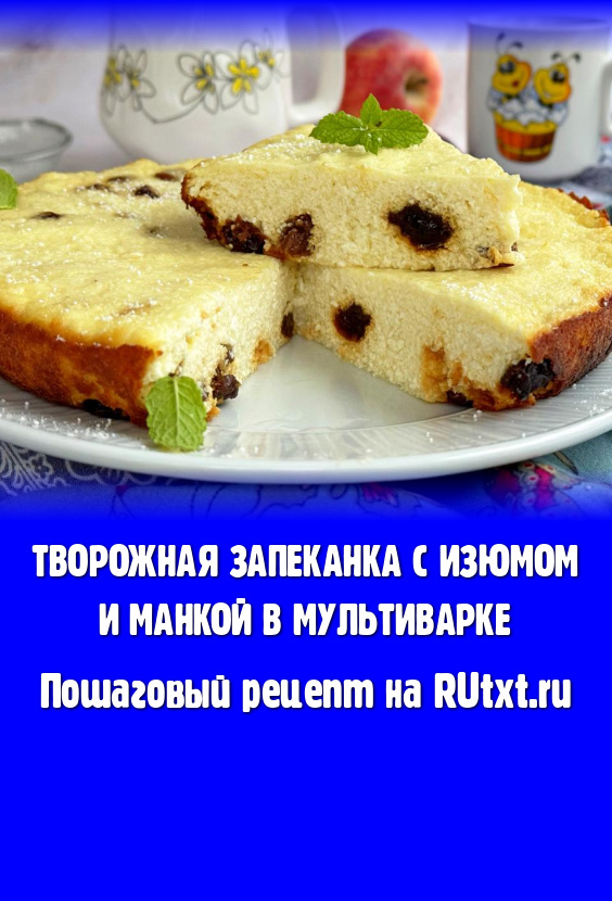 Мультиварка отлично подходит для приготовления самой разнообразной выпечки, в том числе и запеканок из творога. В этот раз предлагаю приготовить творожную запеканку с изюмом и манкой в мультиварке. Запеканка получается очень вкусной, нежной, аппетитной. Она отлично держит форму, хорошо режется на части. При подаче эту выпечку можно дополнить сметаной или сгущёнкой.