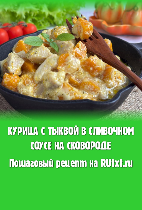 Предлагаю разнообразить меню и на обед или к ужину приготовить мясо курицы, тушёное с кусочками тыквы в сливочном соусе на сковороде. Блюдо получается очень аппетитным, вкусным, насыщенным. Нежные кусочки курицы отлично сочетаются с мягкими кусочками тыквы, а сливки в процессе томления объединяют все ингредиенты, создавая гармонию вкусов. К столу это сытное блюдо можно подать с любым гарниром (я предпочитаю подавать с рисом).