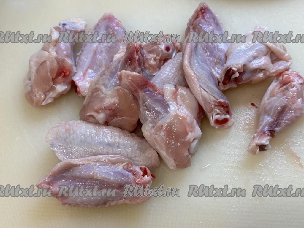 Каждое куриное крылышко разрезать по фалангам на 3 части. Для этого блюда я использовала только 2 части каждого крыла, крайнюю фалангу я использовать не стала, в ней нет практически мяса.