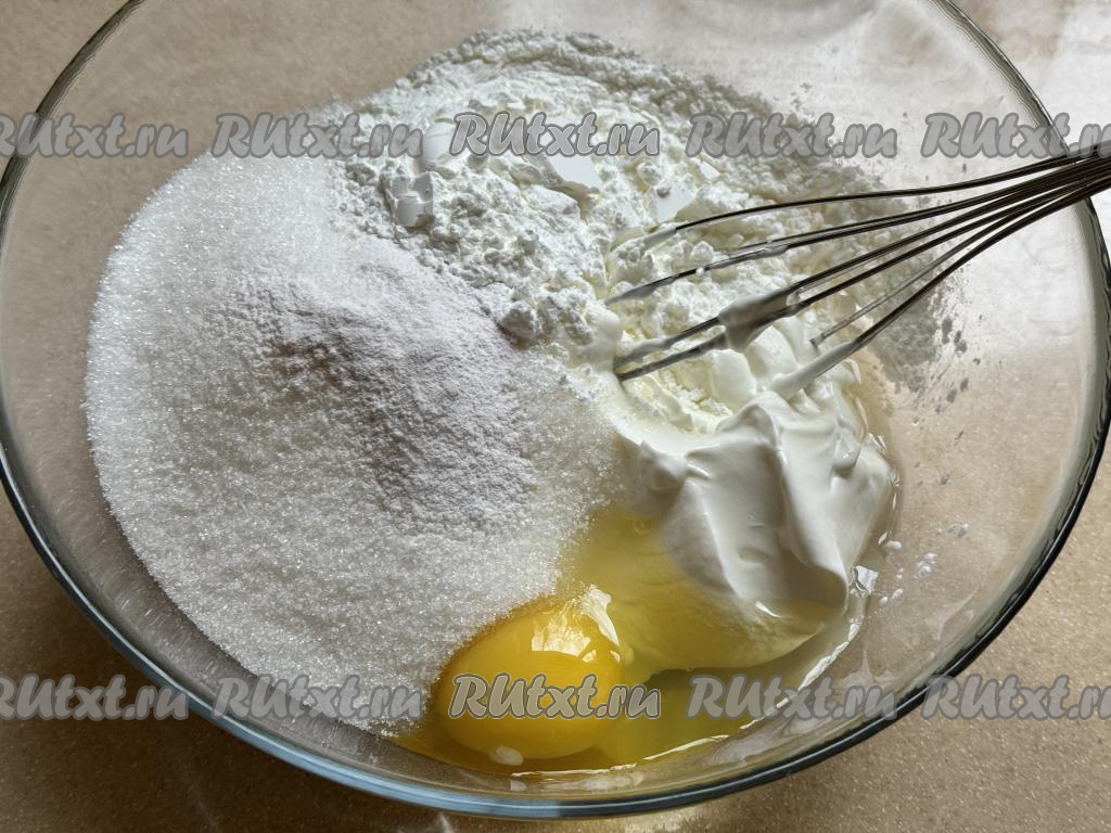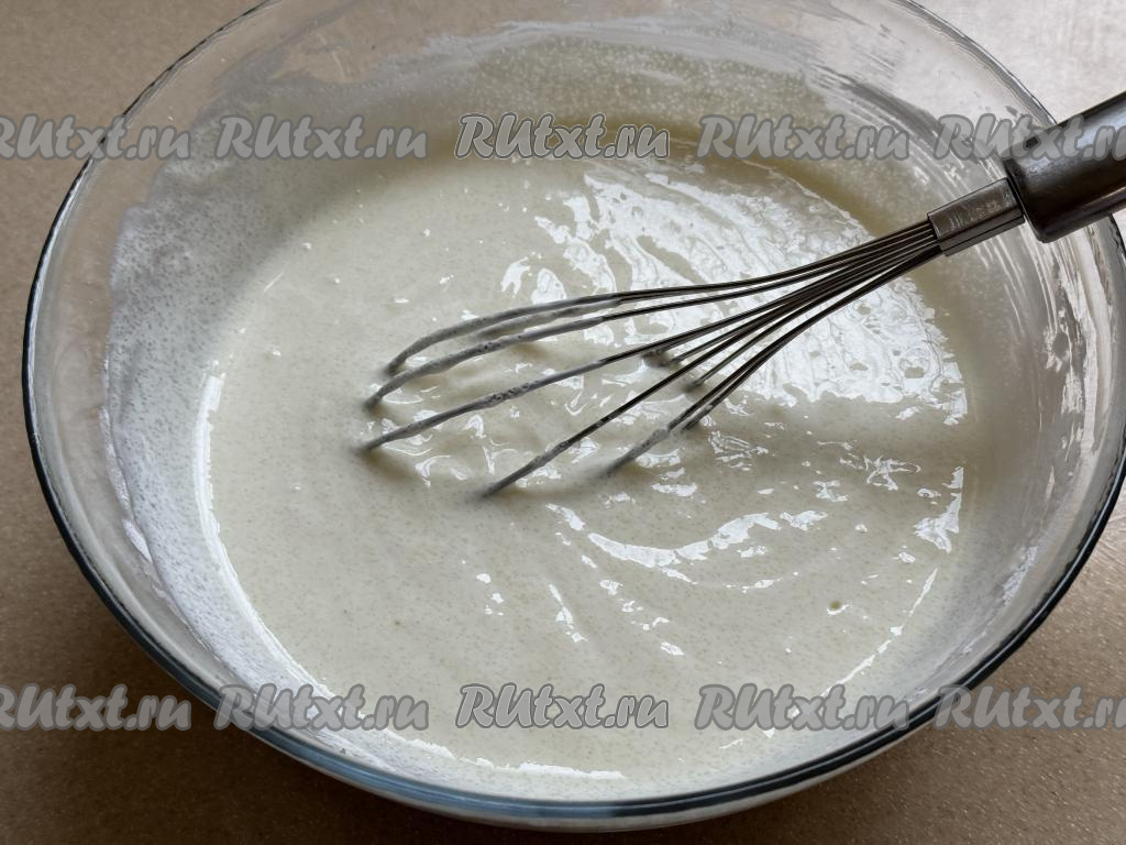 Перемешать сметанную заливку венчиком до однородности, она должна получиться в меру густой.