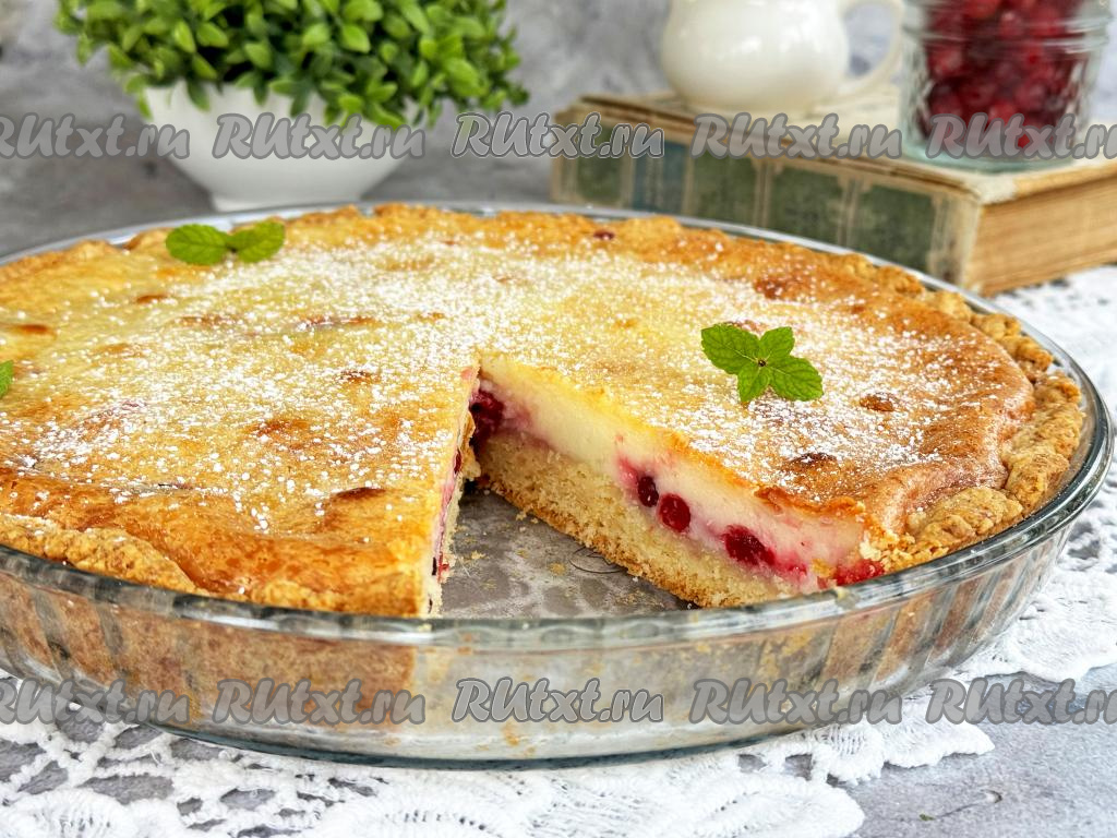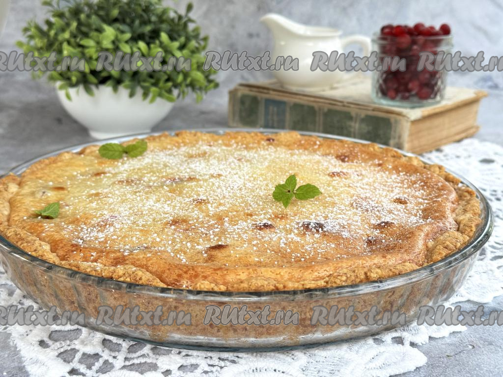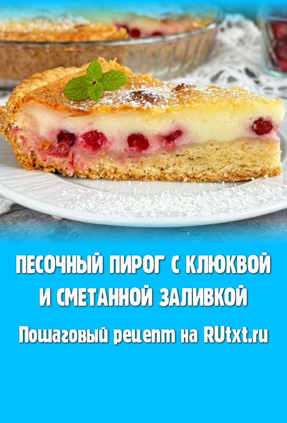 Песочный пирог с клюквой и сметанной заливкой выпекать в разогретой до 180 градусов духовке 1 час. У готового пирога заливка не должна быть липкой. Дать пирогу как следует остыть, чтобы сметанная заливка стабилизировалась. Я перед подачей слегка присыпала выпечку сахарной пудрой, но это необязательно.