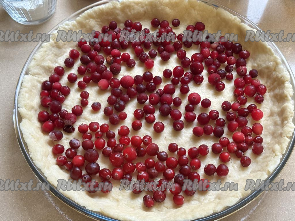 Затем разложить клюкву по дну формы.