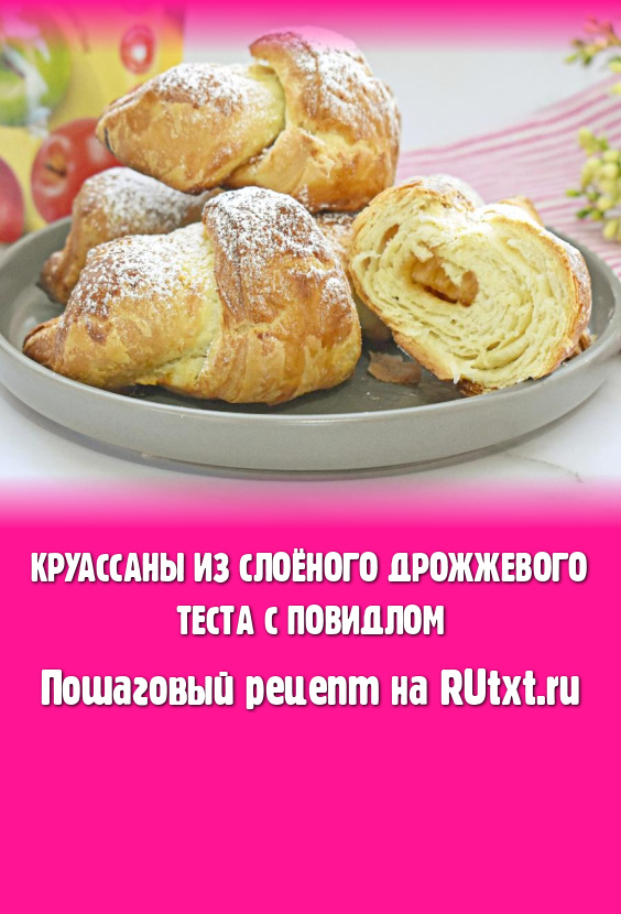 Аппетитные, приятно похрустывающие круассаны, приготовленные из слоёного дрожжевого теста, с нежной начинкой из повидла станут приятным дополнением и к чаю, и к кофе.