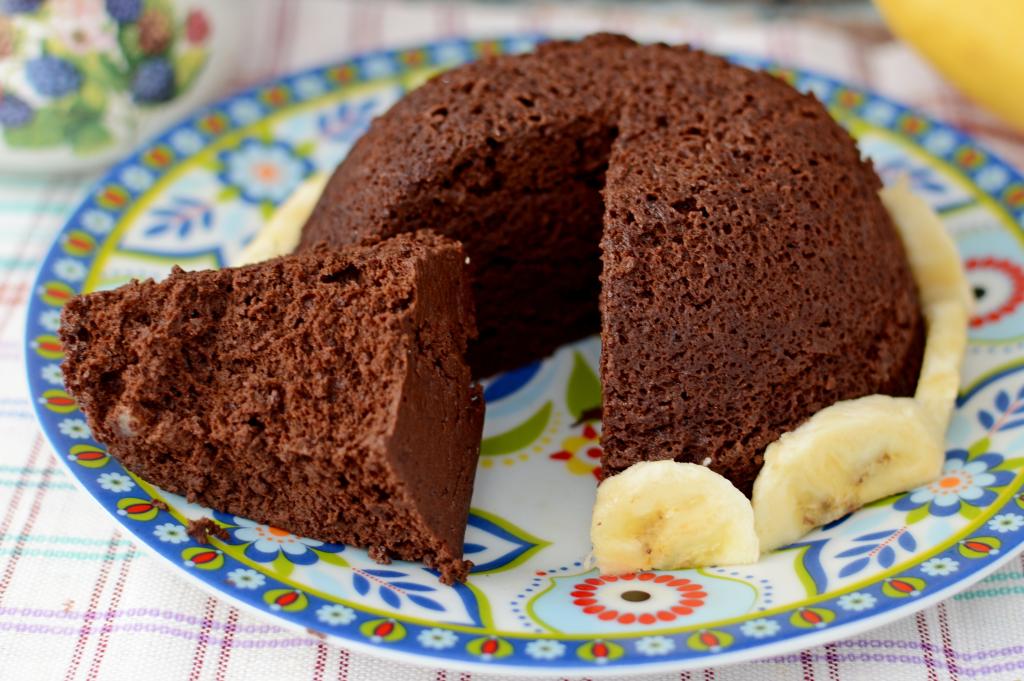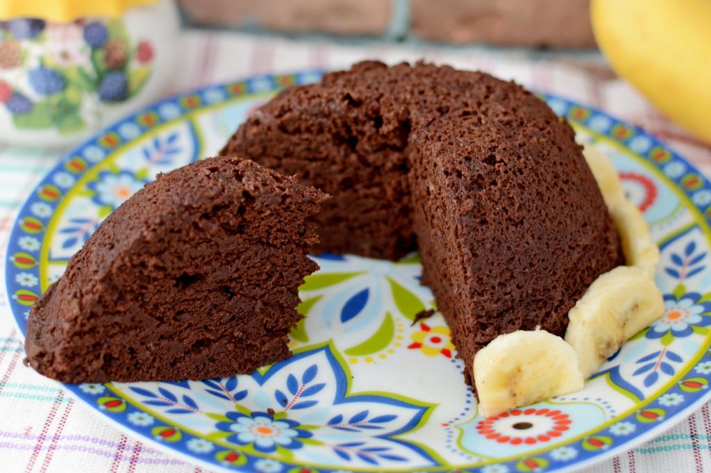 А вот как банановый брауни, приготовленный в микроволновке, выглядит в разрезе. Эта нежная, вкусная, мягкая выпечка просто тает во рту, а готовится и просто, и очень быстро.