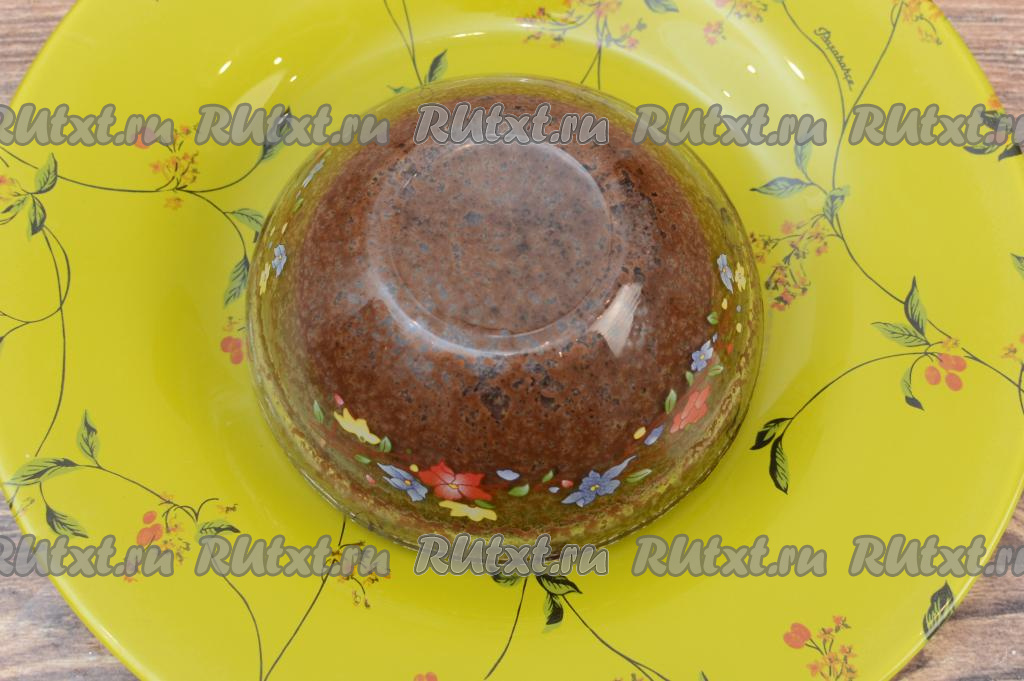 Готовый банановый брауни достать из микроволновки. Верх десерта не должен быть липким.
