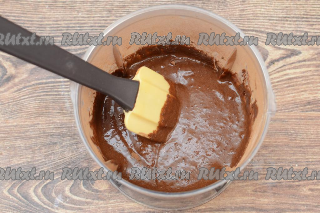 В эту же чашу добавить какао и разрыхлитель. Пробить измельчителем массу до однородности.