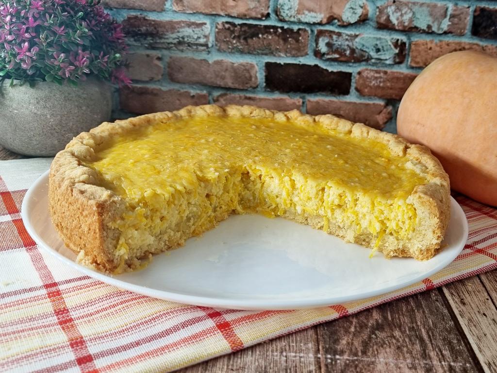 Готовый пирог нарезать на кусочки и подать к столу. В меру рассыпчатая песочная основа этого пирога прекрасно сочетается с нежнейшей начинкой из тыквы и творога. Поверьте, в этой выпечке очень вкусная песочная основа, она съедается до последней крошки!