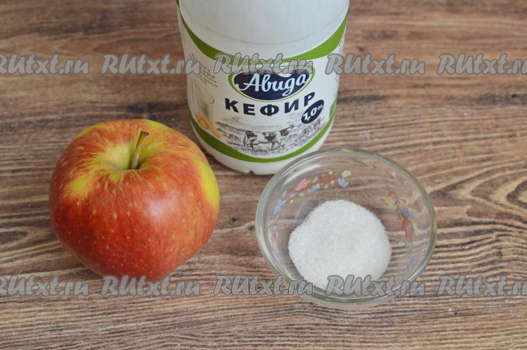 Подготовить продукты. Кефир можно взять любой жирности (я использовала жирностью 1%). Яблоко лучше брать сочное и сладкое.