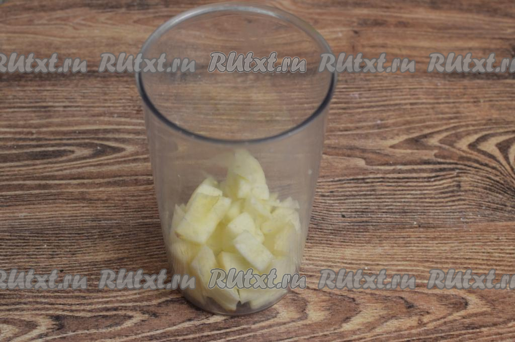 Сложить нарезанные кусочки яблок в чашу погружного блендера.