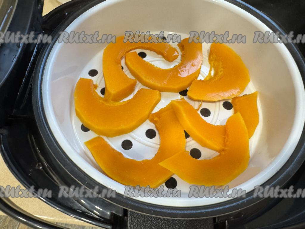 В зависимости от сорта тыквы, время приготовления может немного отличаться. Если по прошествии 15 минут тыква останется твердовата, увеличьте время приготовления на пару в мультиварке ещё на 5-10 минут.